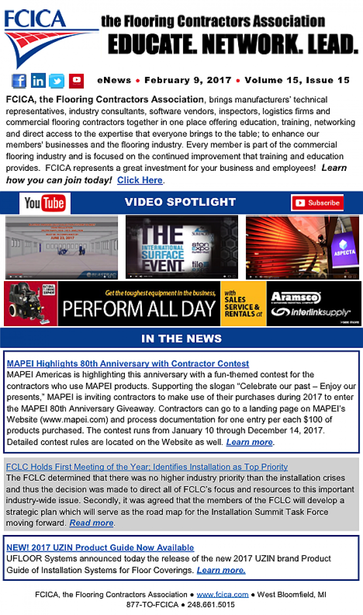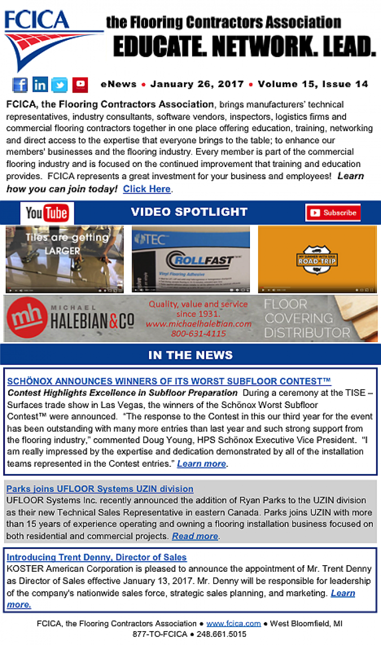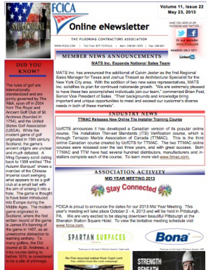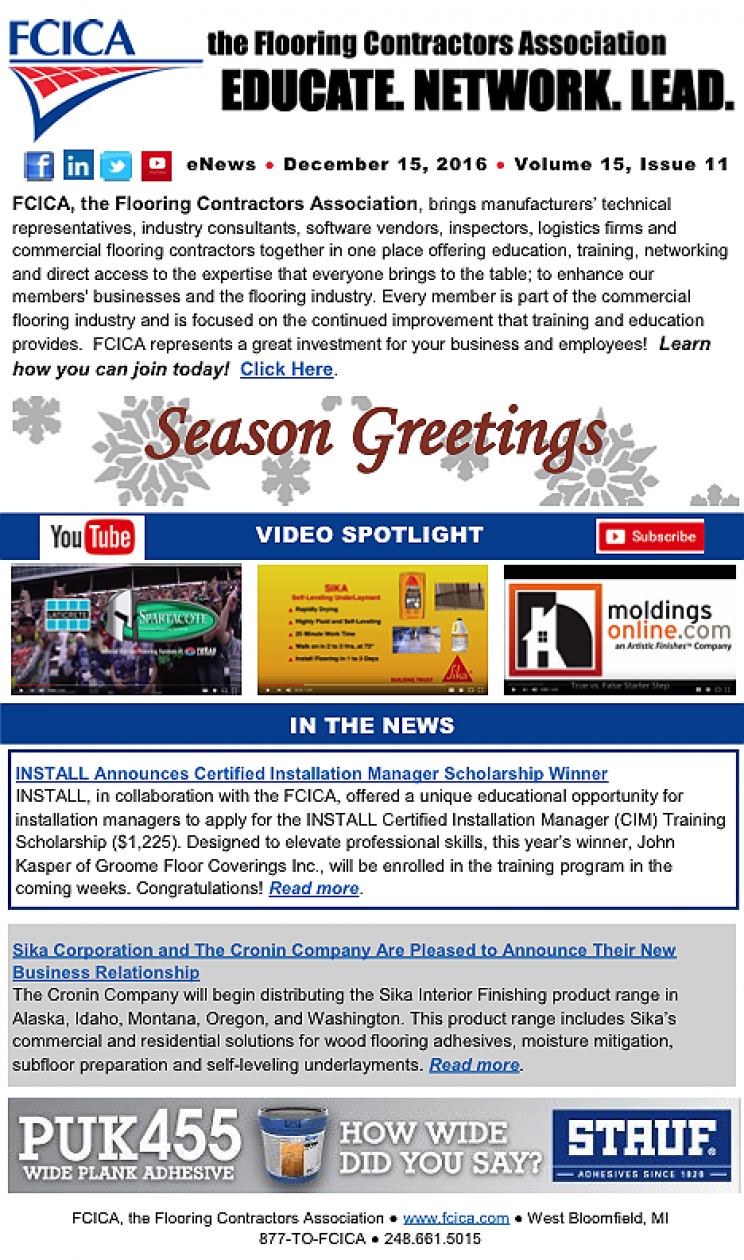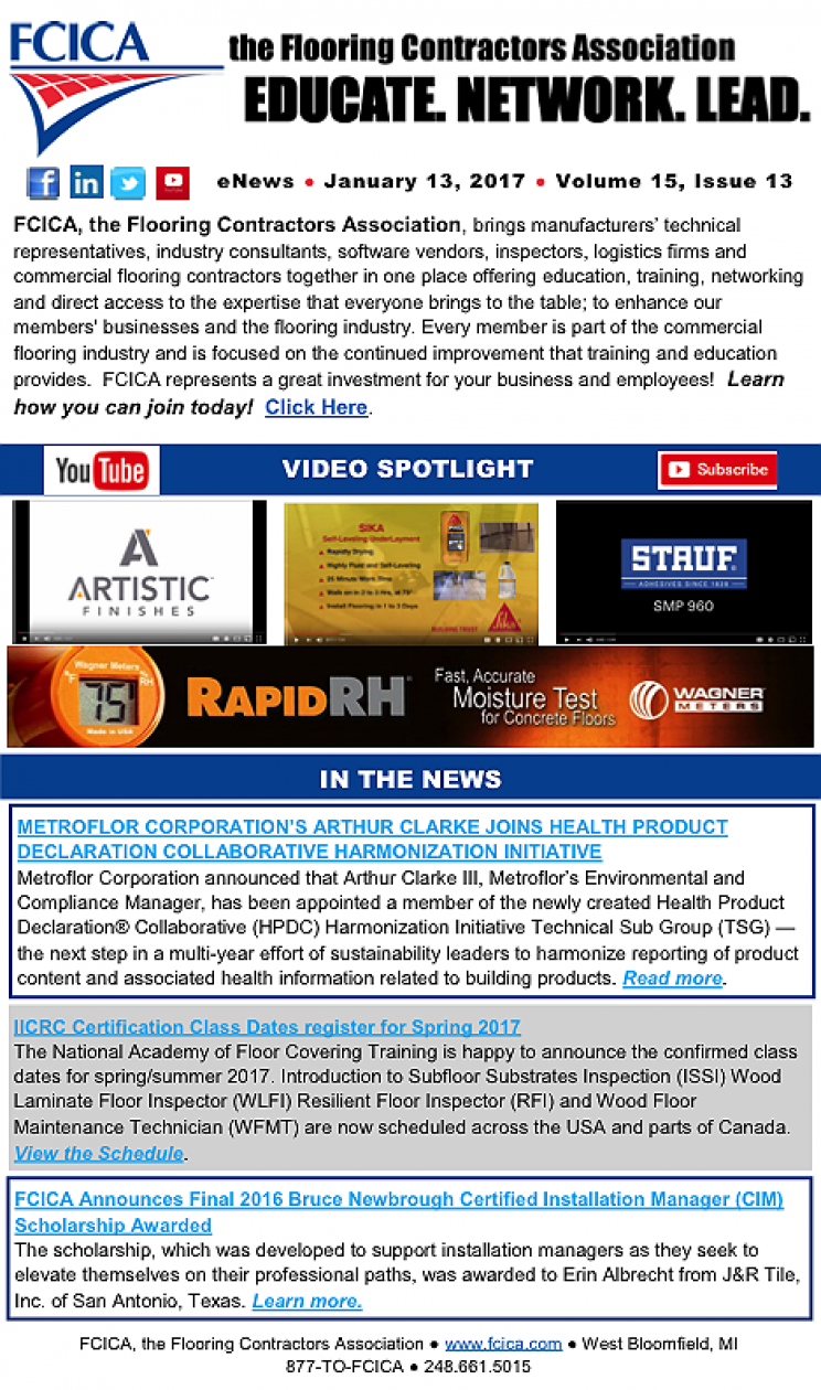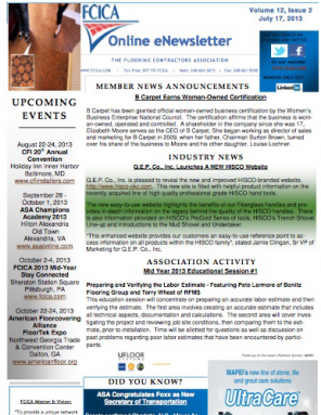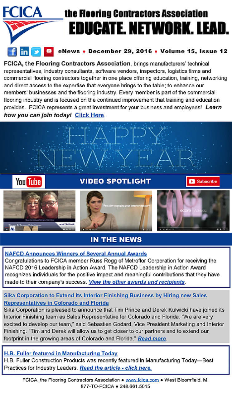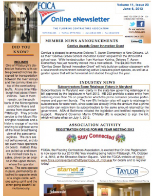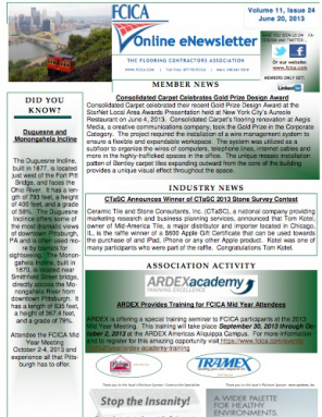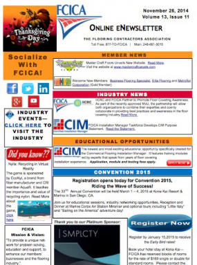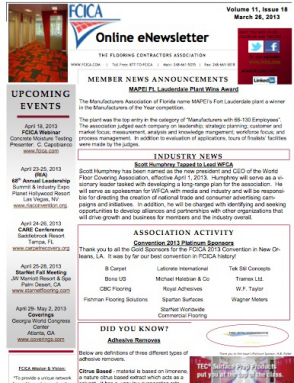 Welcome to the FCICA eNews which features news snippits on association activities, member announcements, industry events and other newsworthy items pertinent to your growing business.