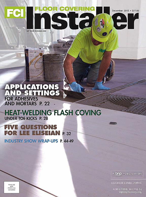 On the cover: Spreading on Chapco 778 TrowelFast Vinyl Flooring Adhesive. Designed for the installation of vinyl tile and plank, VCT and solid vinyl sheet goods, TrowelFast dries quickly, offers excellent resistance to moisture and alkalinity, and is easy to clean up, according to the company. Photo courtesy of Chapco.