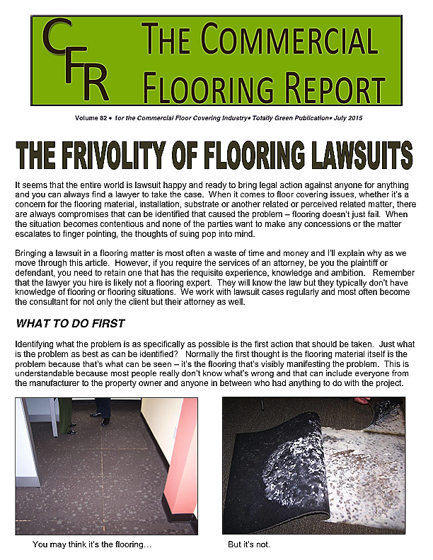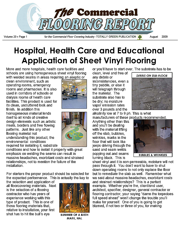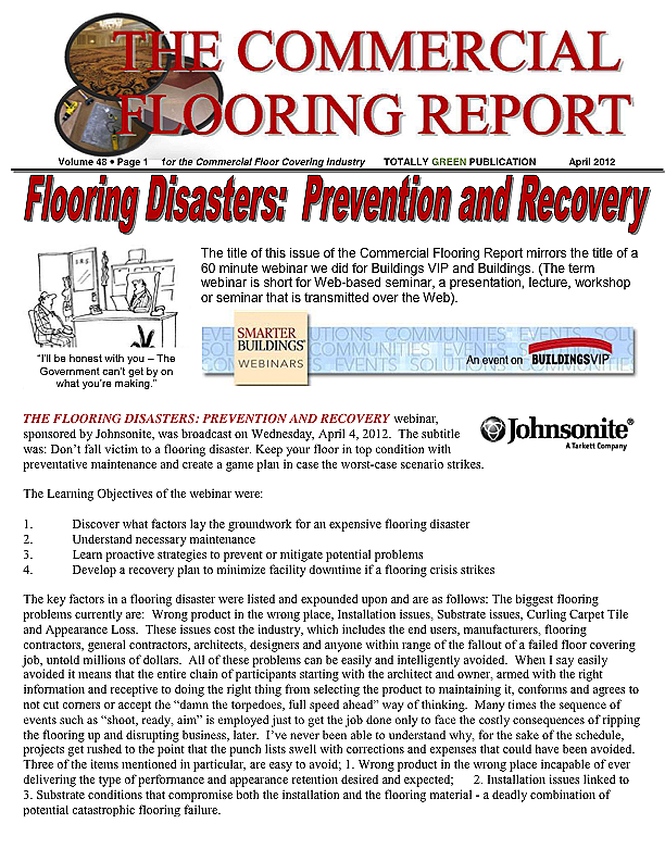 The commercial flooring business is fraught with danger much of it perpetrated by ignorance. This is not to cast aspersions on those in the industry as being dumb but it is in reference to people not knowing or sometimes, dangerously, not caring or worse yet taking matters into their own hands when they think they know and really don't.