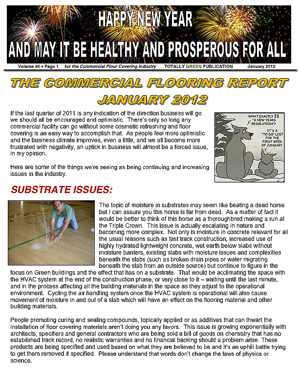 Unfortunately this action has moved us from the frying pan into the fire. Worse yet a bill of goods on these systems are being sold to Architects and General Contractors and the systems are being written into the construction specs. This forces the flooring contractor to either install the flooring material and face imminent failure or not do so and face legal action.