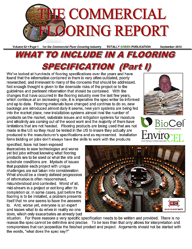 In this issue we'll cover a couple of subjects. Since sustainability is one of the hottest buzz words lately and being green the ultimate objective of every manufacturer for every product known to man, we'll talk about the most sustainable carpet fiber. We'll also take a look at the absurdity of bidding a commercial flooring installation without knowing the product specified and to be installed. How this can be an acceptable practice and why it's done is, in my opinion, insane.