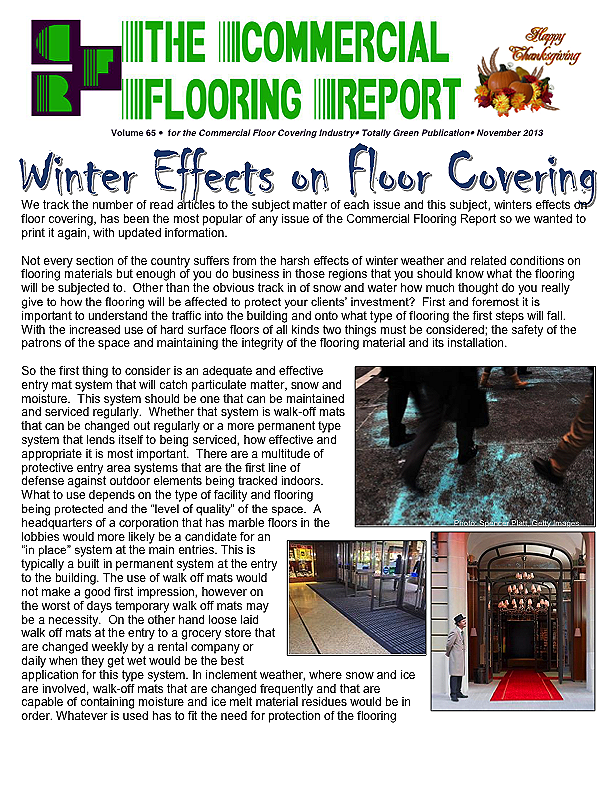Certainly not every section of the country suffers from the harsh effects of winter weather and related conditions on flooring materials but enough of you do business in those regions that you should know what the flooring will be subjected to.