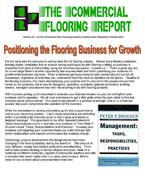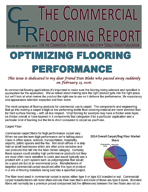 Welcome to the 100th edition of the Commercial Flooring Report. I thank all of you for the continued support over the years and your quest for knowledge of the industry.