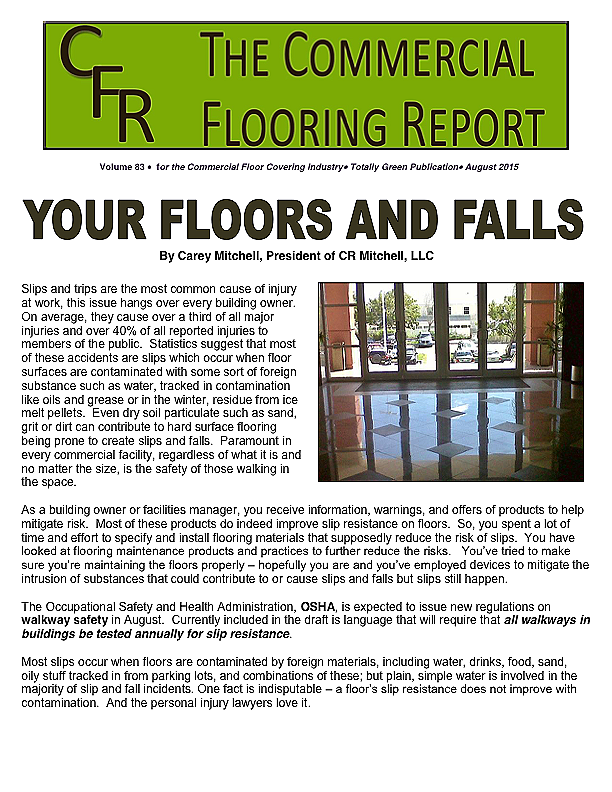 I've also written a small piece on walk off mats; their use and safety. All of this has to do with protecting the end users investments and you as a business person.