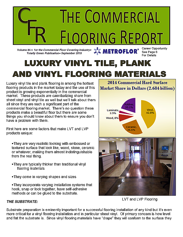 Luxury vinyl tile and plank flooring is among the hottest flooring products in the market today and the use of this product is growing exponentially in the commercial market. These products are cannibalizing share from sheet vinyl and vinyl tile as well but we'll talk about them all since they are such a significant part of the commercial flooring market. There's no question these products make a beautiful floor but there are some things you should know about them to ensure you don't have a problem with them.