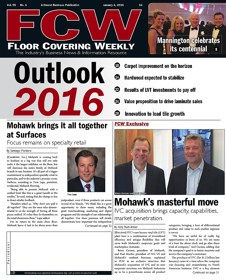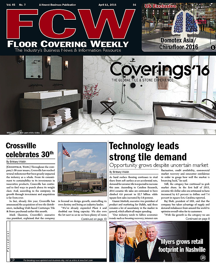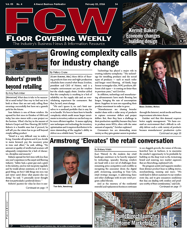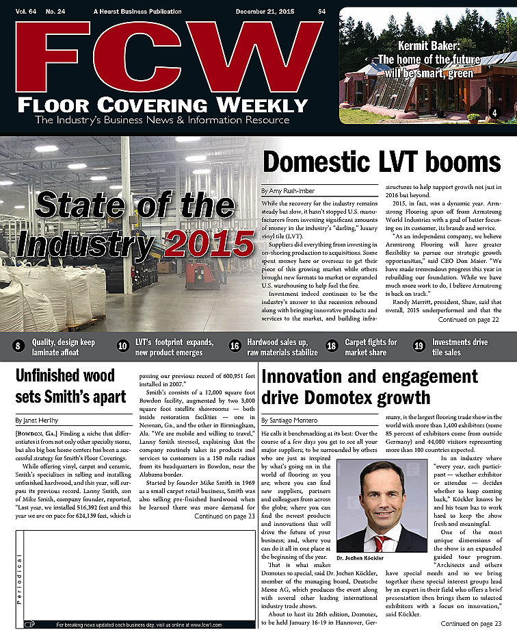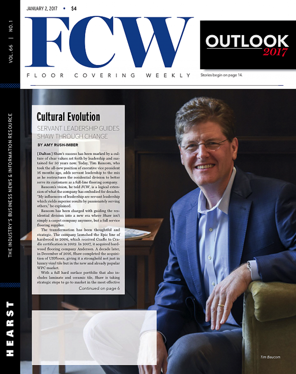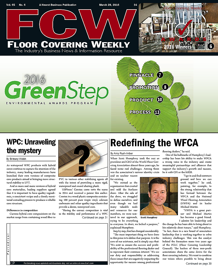 Floor Covering Weekly's mission is to touch the lives of our readers in positive ways by bringing them the full range of news and information they need in order to enhance their success in the floor covering industry. For more than 60 years, FCW has had a positive influence on the industry by providing unbiased and accurate coverage of industry events, changes, etc. as they develop. For retailers, we convey basic business information, strategies and updates as well as industry-specific news coverage of new product developments, merchandising and sales strategies. For manufacturers, we serve as a way for them to communicate directly with their retail customers.